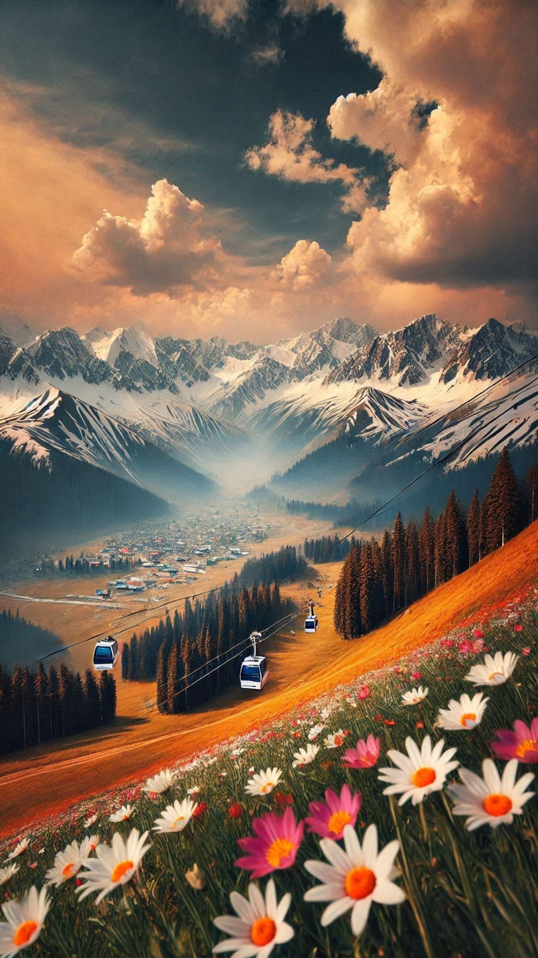 జమ్మూ మరియు కాశ్మీర్లో ఉన్న గుల్మార్గ్, మంచుతో కప్పబడిన ఎత్తైన హిమాలయాలు, పూలు పరుచుకున్న పచ్చిక బయళ్ళు, లోతైన లోయలు ఇది ప్రపంచంలోనే రెండవ అత్యధిక కేబుల్ కార్ కి నిలయం.