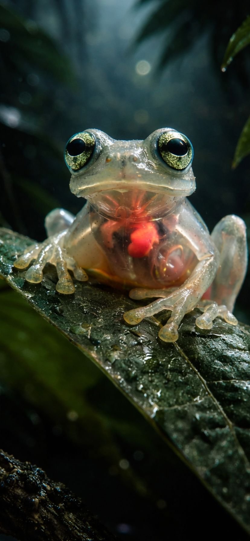 గ్లాస్ ఫ్రాగ్ అనే కప్ప శరీరం పూర్తిగా పారదర్శకంగా ఉంటుంది. దాని పొట్ట ద్వారా గుండె, పేగులు వంటి ఇన్నర్ ఆర్గాన్స్ అన్నీ క్లియర్ గా కనిపిస్తాయి.