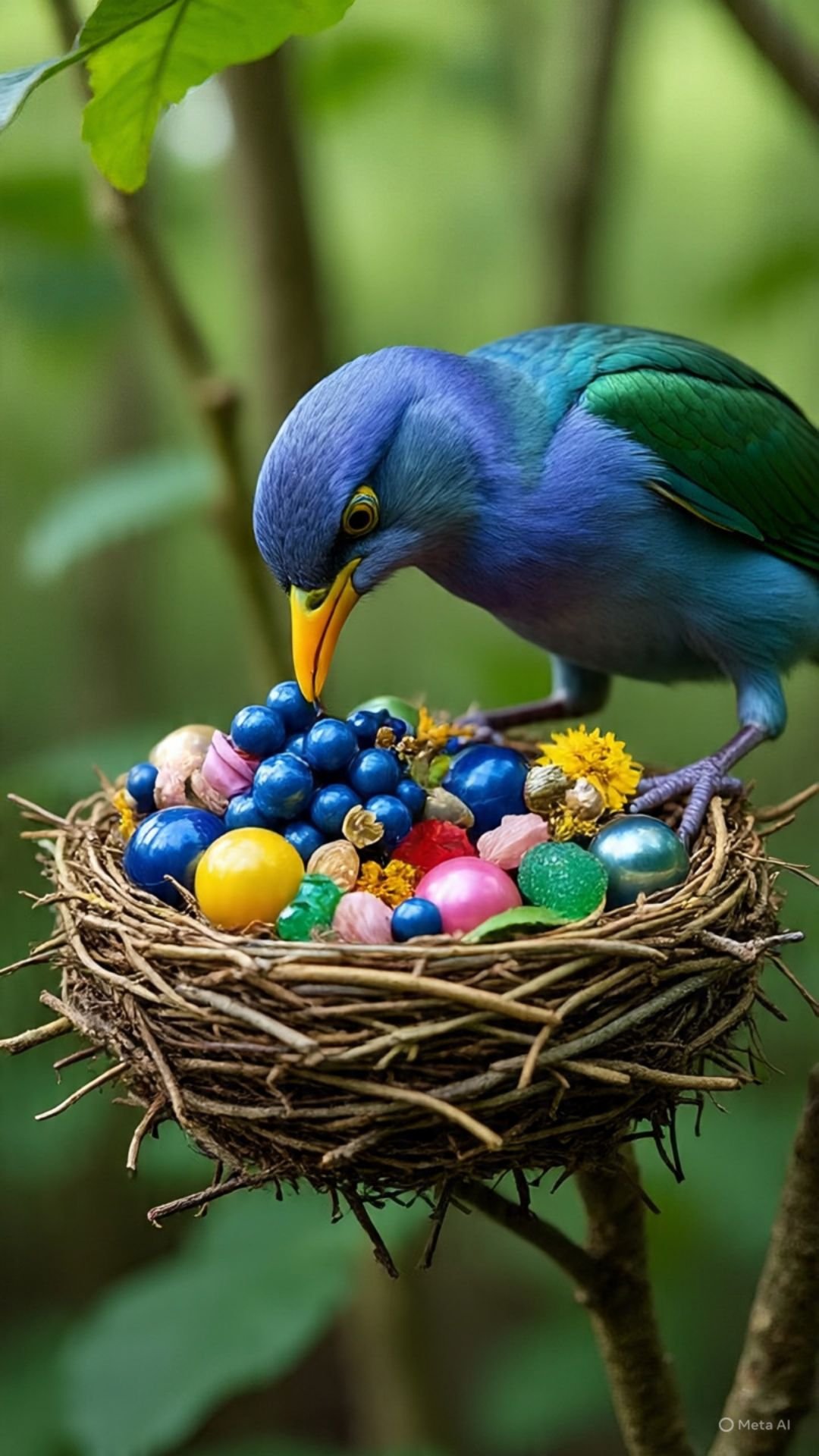 ఈ జాతికి చెందిన మగ పక్షి రంగురంగుల వస్తువులతో గూడు కట్టేస్తుంది. దీన్ని పూర్తిగా డెకరేట్ చేసి ఆడ పక్షిని ఆకర్షిస్తుంది. ఇది ప్రేమ కోసం కట్టే ఆర్ట్ వర్క్.